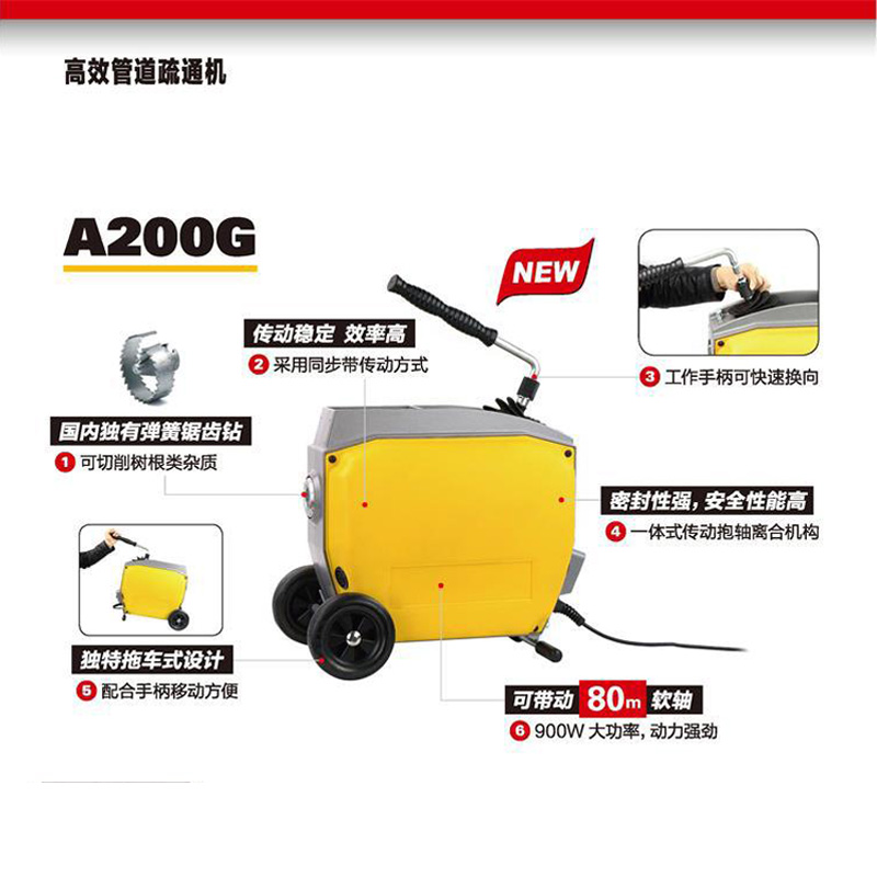 虎王A200G高效管道疏通機特點: