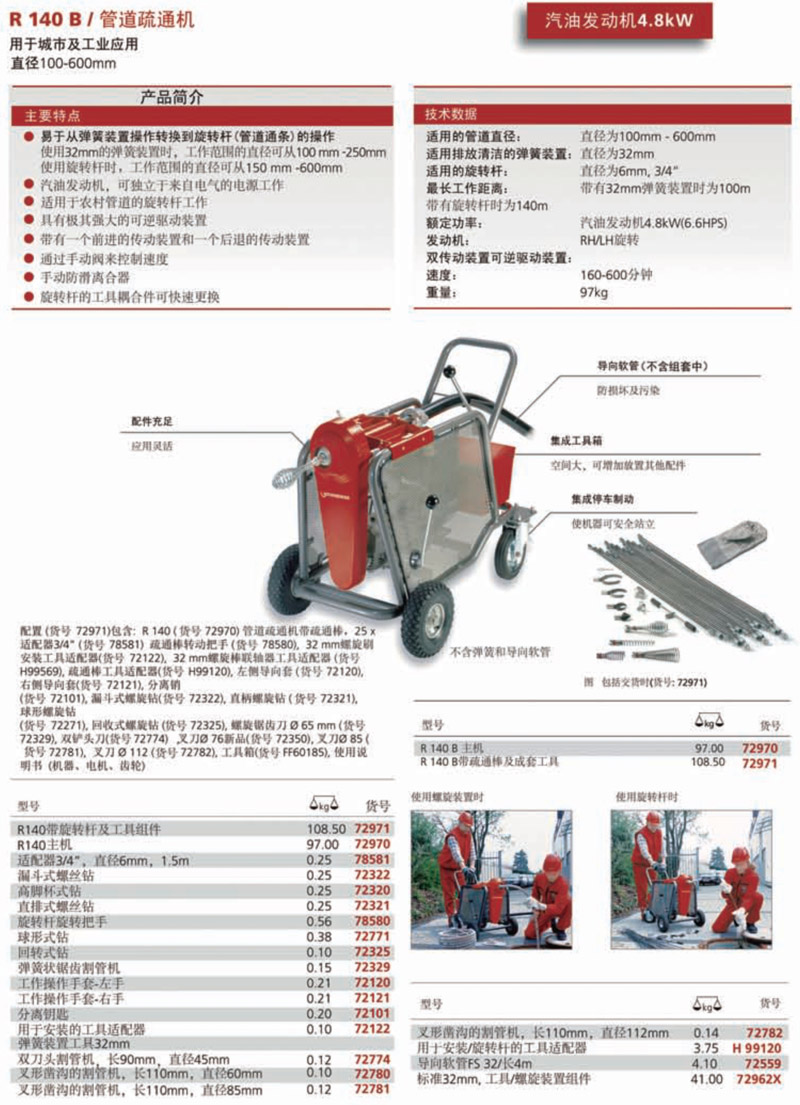 ●易于從彈簧裝置操作轉(zhuǎn)換到旋轉(zhuǎn)桿(管道通條)的操作