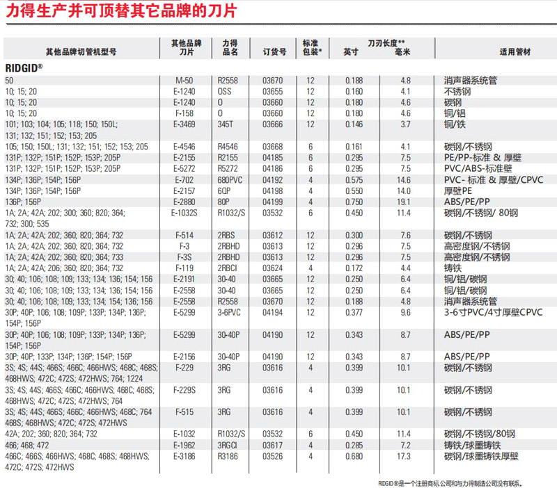 各類切管機刀片