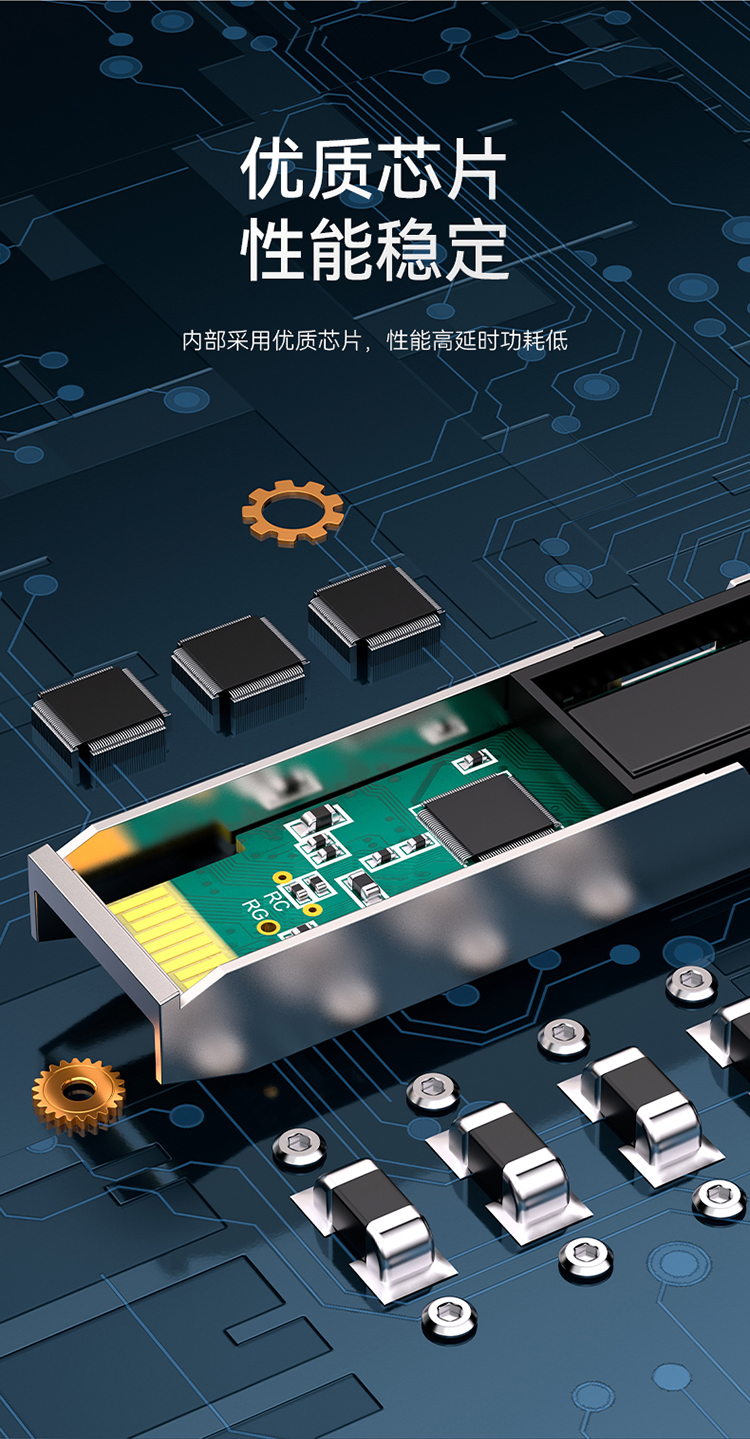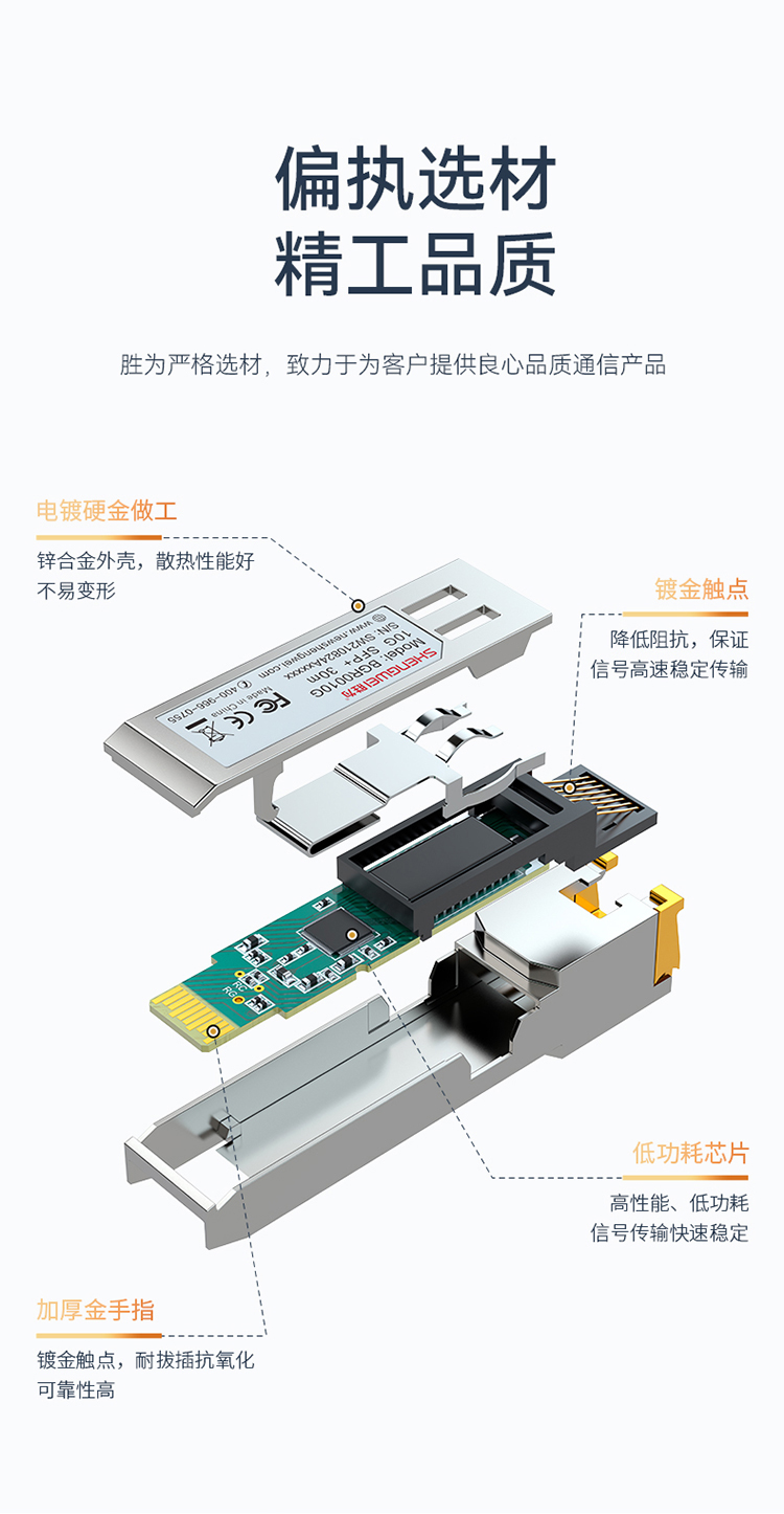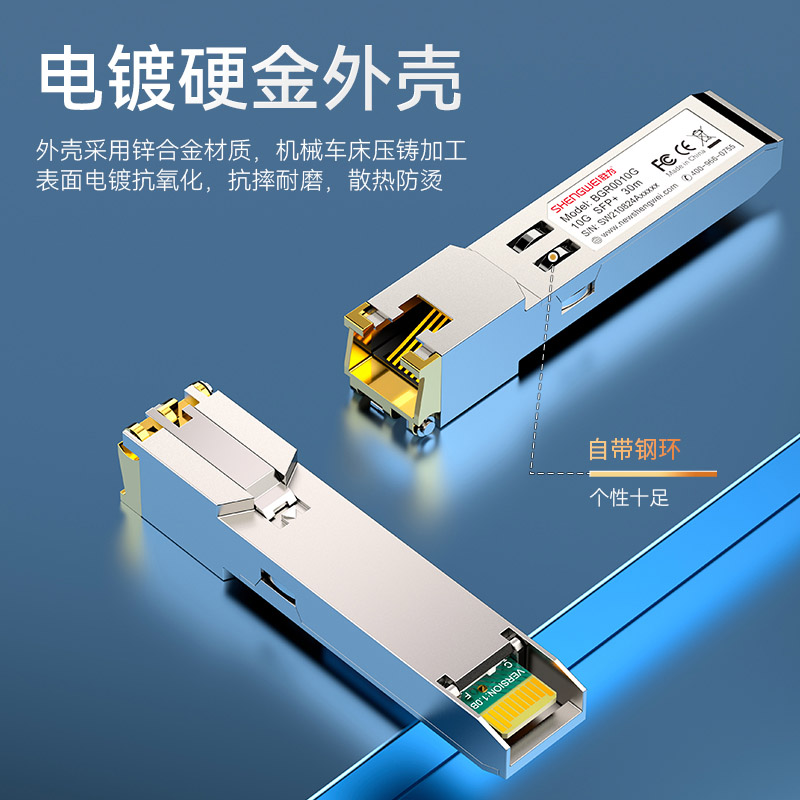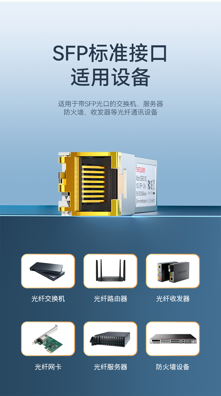 適用于帶SFP光口的交換機、服務器,防火墻、收發器等光纖通訊設備。支持熱插拔,RJ45接口直連網線,簡單快速連接設備,系統不告警。